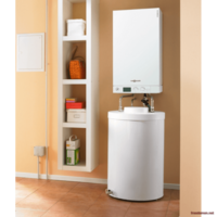 Газовый комбинированный водогрейный котел со встроенным пластинчатым теплообменником для приготовления горячей воды.